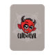 Vector cartoon illustration of a devilishly cute little devil with big eyes with Cute But Evil text. Keywords: devil, hell, cute, demon, evil, satan, halloween, monster, horns, horror, adorable, sweet, devilishly, devilish, precious, endearing, loveable, lovely, appealing, engaging, delightful, dear, darling, winning, winsome, charming, enchanting, attractive, pretty, adorbs