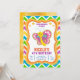 Amaze your guests with this colourful birthday party invite featuring a cute butterfly with vibrant typography against a colourful chevron background. Simply add your event details on this easy-to-use template to make it a one-of-a-kind invitation. Flip the card over to reveal a faux gold glitter texture on the back of the card.