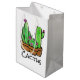Three cute cacti with pink flowers in little terra cotta pots- a fun south western design!