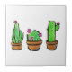 Three cute cacti with pink flowers in little terra cotta pots- a fun south western design!
