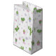 Cacti gift bags with cartoon prickly pear cactus, baby cacti in pots, boots, muffin cups, and star-shaped flowers. Colourful pattern - green, pastel pink and purple colours on a white background. Lovely for cacti party, including baby shower, birthday, and other events.