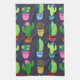 Get in on the cactus craze! Decorate your kitchen with this whimsical kitchen towel. The cutesy little cactus pattern has different sized and shaped cartoon style cacti and flowers with little pots. The colours are bold and fun!