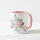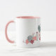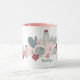 A cute cactus floral coffee mug in pink and sage green with customisable name from Jenn Steffen for Studio Posies.