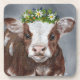 Cute Calf with Floral Crown Coaster