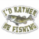 A Bass fish imaged is between the wording I'D RATHER BE FISHING. Wording is filled with a camouflage pattern that coordinates with the bass fish.