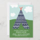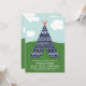 This cute illustrated birthday party invitation for a camping theme birthday features a teepee tent with a blue and white tribal design. Additional text can be added to the back of the card if desired.