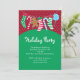 Start your Holiday party off right with our cute clothesline with hanging stockings, candy canes, gingerbread men, & lollipops wet on a green background with red polka dots kids christmas party invitation. Perfect holiday party invitation for a christmas party, office party, company party, cookie exchange party, ornament exchange party & a holiday party for children. ©Babystar Designs