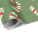 Cute Candy Canes Cartoon Christmas Pattern Green Wrapping Paper