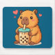 Cute Capybara Kawaii Anime Drinking Bubble Tea Lov Mouse Pad