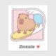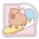 A doodle of a cute capybara surfing on a yellow surfboard. Adorable design for summer and capybara lovers! ♥