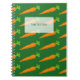 Cute carrot pattern recipe notebook for cooking. Healthy food Veggie design. Orange and green. Make your own Organic theme cook book. Vegetable icon with personalised title. Cute gift idea for Vegan vegetarian chef cook.