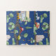 Cute Cars in Town Pattern for Little Boys Blue Jigsaw Puzzle