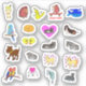 Selection of cute cartoon animals on stickers: hedgehog, glow worm, horses, donkeys, dog, whale, cat, sheep, budgerigar