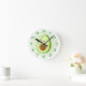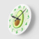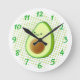 Cute Cartoon Avocado On Green Vortex Round Clock