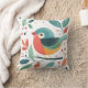 Cute Cartoon Bird with Leaves and Berries Cushion