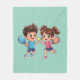Cute Cartoon Boy and Girl Playing Padel Tennis – F Fleece Blanket