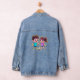 Cute Cartoon Boy and Girl Playing Soccer Together Denim Jacket