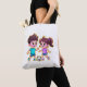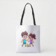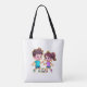 Cute Cartoon Boy and Girl Playing Soccer Together Tote Bag