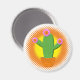 Cute Cartoon Cactus With Pink Flowers Magnet
