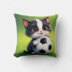 Cute Cartoon Cat Holding Soccer Ball Cushion