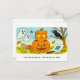 Cute Cartoon Cat Sitting in Pumpkin Costume Postcard
