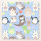This image is a cute, cartoon-style pattern featuring a variety of adorable animals. There are cats, dogs, penguins, a rabbit, a frog, a hamster, a dinosaur, and an otter, all drawn with soft, pastel colours and big, innocent eyes. The background is a transparent grid. The overall feel of the image is playful and lighthearted, with a touch of whimsy.