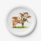 Cute Cartoon Dairy Cow with Flower and Grass Paper Plate
