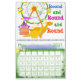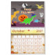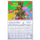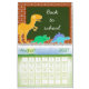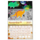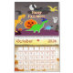 Cute Cartoon Dinosaurs Calendar for Kids. A fun and colourful cute cartoon dinosaurs children's calendar 2017 for the coming year with colourful super cute dinosaurs friends: orange Diplodocus, pink T-Rex, green Triceratops, blue Parasaurolophus and flying purple Pteranodon dinos in many funny settings in the next coming year for the months January - December. January: orange Diplodocus, blue Stegosaurus and yellow Triceratops with red winter hats in a snowy winter landscape; Febuary: Adorable cute green cartoon dinosaur Triceratops with love hearts saying Happy Valentine's Day!; March: Orange Diplodocus dinosaur in a nature meadow in spring season with flowers and butterfly; April: Cute Diplodocus dinos flying through a starry galaxy universe with colour stars and swirls; May: Cute dinosaurs in a Ferris Wheel and text "Round and Round and Round"; June: Cool party Deejay DJ Dinosaur with sun glasses playing music on a tropical island with sunset palm trees; July: Summer holiday dinosaur cut and paste papercraft page, make your own cute travel Diplodocus decoration!; August: Back to School with cute orange T-Rex, green Triceratops and blue Stegosaurus going back to school; September: two kawaii dinos looking at the stars in a night sky in a repainted version after the fine art painting "Starry Night" by Vincent van Gogh with text "You are a Star"; October: Spooky and funny scary Happy Halloween with orange T-Rex, green Diplodocus, blue Stegosaurus with a witch hat and flying Pteranodon at night with full moon, bats flying, haunted house and pumpkin face; November: Tripceratops and Diplodocus cartoon astronauts in space walking on the moon with colour stars and a little blue planet Earth and funny slogan "A Small Step for Dinosaurs"; December: Yellow Triceratops, blue Parasaurolophus, orange Diplodocus and pink purple T-Rex by the Christmas tree with rays of light and lots of gifts and presents and text "Merry Christmas". On the backside of the calendar a special FREE Party Dinosaurs Game! Who is the first dinosaur to finish at the dinosaur party? Play this exciting cartoon dinosaurs board game with your all friends and family members! This unique kawaii dinosaur calendar for kids is fully customisable, add your texts and images! This great dinosaurs cartoon calendar makes a great Christmas or birthday gift for all little and big dino fans!
