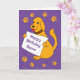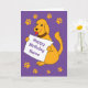 Cute cartoon dog holding a notice and surrounded with pawprints. Message reads Happy Birthday Name and can be easily personalised to a message of your choice. Card has a purple background and the dog is orange with orange pawprints! Thanks for viewing my cartoons!