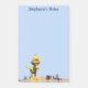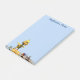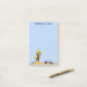 Jot down important reminders on these post-it notes featuring a cute yellow cartoon duck playing on the beach with a cute cartoon crab.  They have sand, a beautiful blue sky and a beach ball to make their day perfect.  The phrase “Fun in the Sun” can easily be changed or removed.  The name at the top can be customised as well.