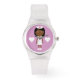 Cute Cartoon Ethnic Nurse & Hearts Pink Watch