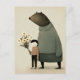 Cute cartoon fairy bear and boy with flowers postcard.