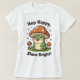 Adorable cute cartoon frog with mushroom hat t-shirt featuring the quote 'Hop Happy, Shine Bright!' Soft pastel kawaii/cottagecore art brings playful, wholesome vibes - perfect for teens, kids & young adults. Great for gifting or everyday wear. Shop now.