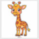 Playful illustration of a bright orange giraffe with large pink eyes, pink cheeks, and a warm smile. Ideal for children's books, kids' branding, educational materials, and cheerful campaigns.