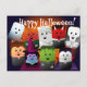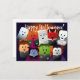 Wish everyone a happy Halloween with these cute postcard featuring a variety of colourful cartoon monster creatures and characters!