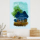 Cute Cartoon Hidden Fluffy Blue Cat Poster