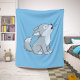 Cute Cartoon Howling Wolf Pup Blue Sherpa Blanket