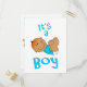 Cute Cartoon It’s a Boy Text in Bright Blue - Invitation Postcard