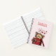 Spiral notebook with a cute drawing of a little kitten poking its head out of a gift box.