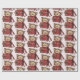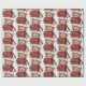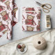 Wrapping paper with a cute drawing of a little kitten poking its head out of a gift box.