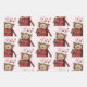 Cute Cartoon Kitten in a Box with Hearts Pattern Wrapping Paper Sheet