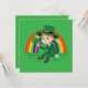 Cute cartoon leprechaun with shamrock and rainbow invitation