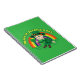 Notebook with an Illustration of a cute smiling leprechaun wearing a green suit, a top hat while holding a shamrock leaf, with a colourful rainbow in the background and text saying "Happy St. Patrick's Day"