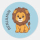 Cute Cartoon Lion Blue Custom Name Classic Round Sticker