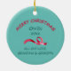 An adorable cartoon image of a little brown lion is on the front of this Christmas ornament designed for a grandparent or parent to give to a child as a keepsake. The lion is dressed in green winter boots, and holds a gift package wrapped in red and gold. The image is placed on a teal blue background with snowflake confetti. The back of the ornament is also blue, with your custom text in five easy to change text fields. Make it say whatever you'd like! Appropriate for a young child, and either a boy or a girl.