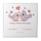 Cute Cartoon Lovebirds Pink Hearts Valentine’s Day Ceramic Tile