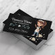 Cute Cartoon Maid House Cleaning Service Black Business Card