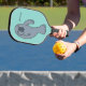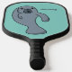 Create the perfect personalised gift for your favourite pickleball player. This paddle features a cartoon illustration of a cartoon manatee in grey against a light blue green background and is ready to be personalised with a name in coordinating grey letters.