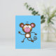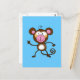 Bring smiles and fun with this adorable and customisable postcard featuring a hand drawn cartoon monkey with big pink cheeks, playful arms, and a curly tail. Set against a bright blue background, this cheerful design is perfect for kids, animal lovers, classrooms, birthday invitations, or just sending a happy hello. Great for teachers, parents, or anyone who enjoys whimsical, lighthearted artwork. This playful monkey adds joy to any message you send. Personalise it with your own text on the back to create a fun and memorable greeting!