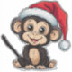 Adorable cartoon monkey happily sitting while wearing a festive Santa hat. Perfect for holiday themes, Christmas designs, or cheerful illustrations bringing joy and celebration to any project.